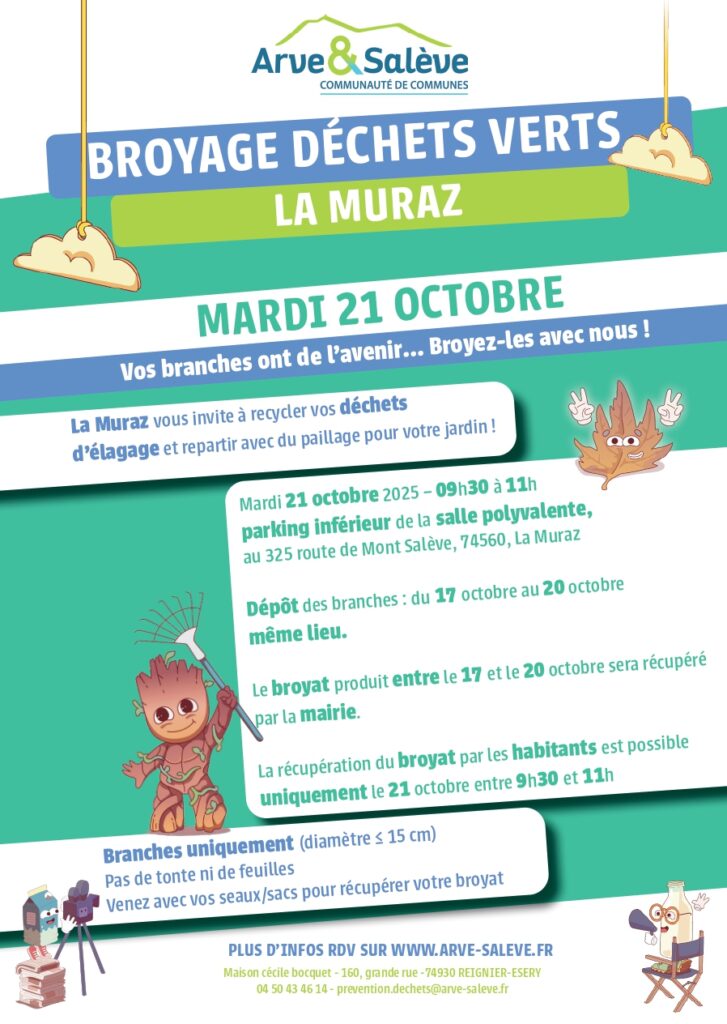 Pose des branches à partir du 17 octobre, récupération du broyat entre 9h30 et 11h e mardi 21 octobre.