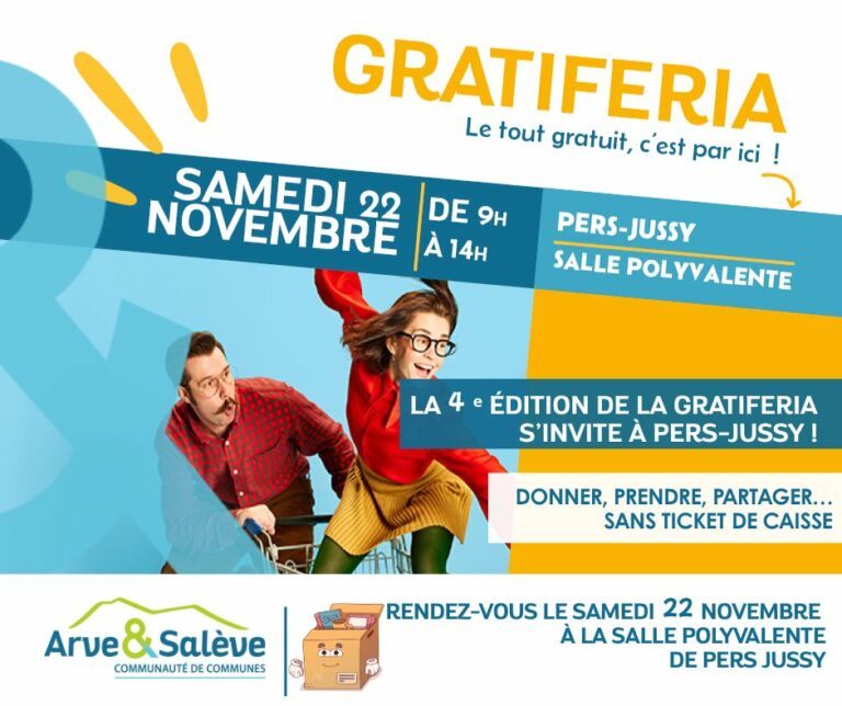 Après Scientrier, Arthaz-Pont-Notre-Dame et La Muraz, la Gratiferia posera ses tables à Pers-Jussy le samedi 22 novembre 2025, de 9h à...