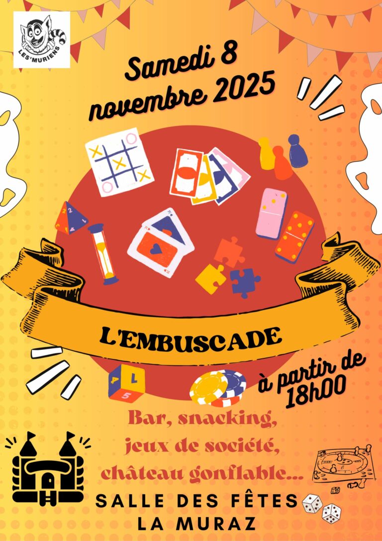 Soirée Embuscade le samedi 8 Novembre à partir de 18h à la Salle Polyvalente Bar, snacking, jeux de société, château...